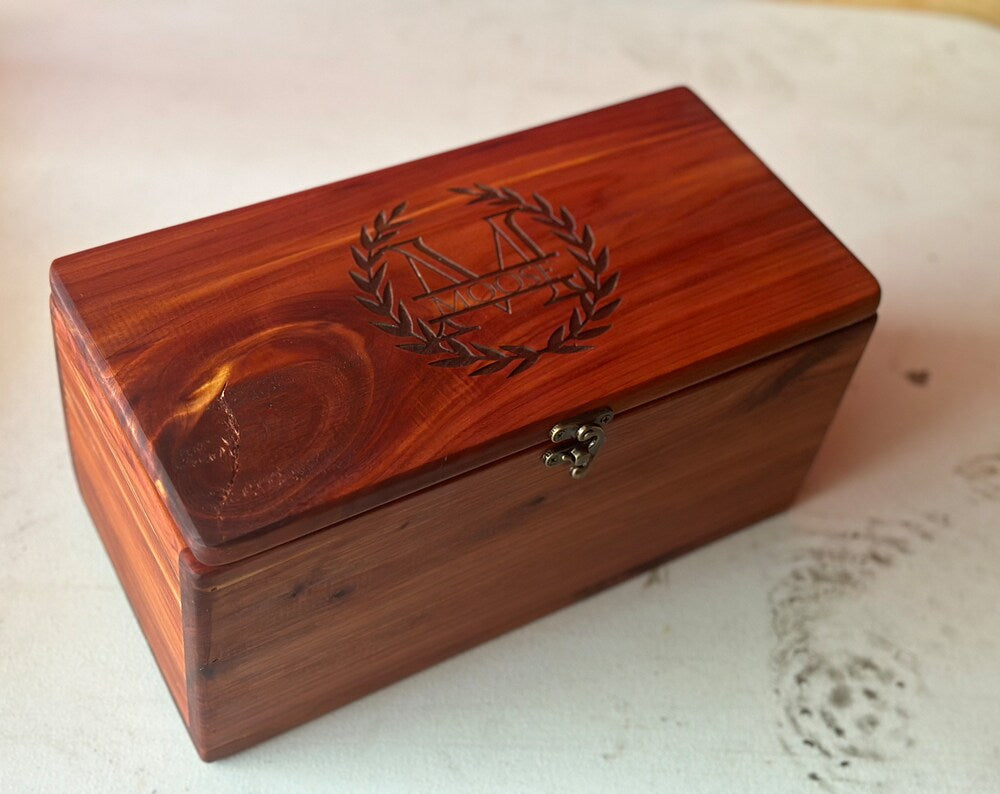 Crafted from aromatic cedar, this personalized keepsake box is perfect for storing treasured items. With its customizable design, it makes for a unique and thoughtful gift for any occasion. Keep your memories safe in style with our wooden box.