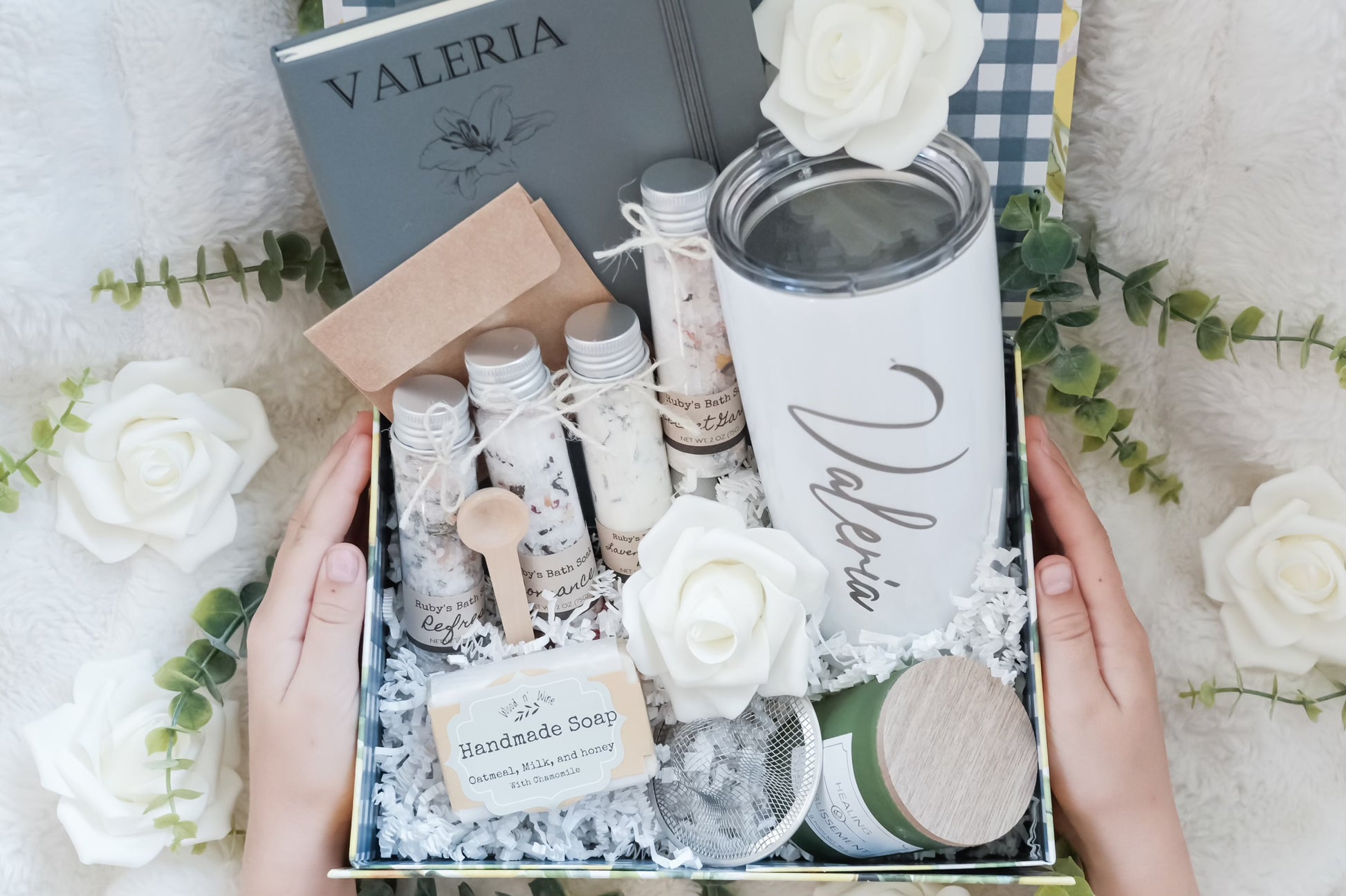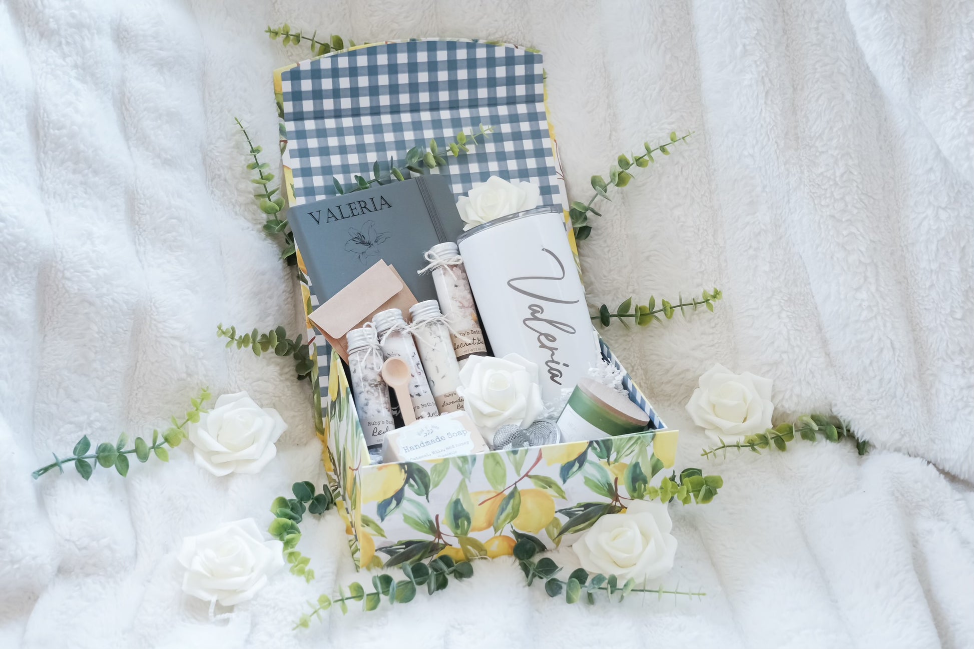 This custom gift box is the perfect gift to make someone feel special. Whether it is for a birthday, housewarming, get well, or just because, it is sure to warm hearts. Each box includes: